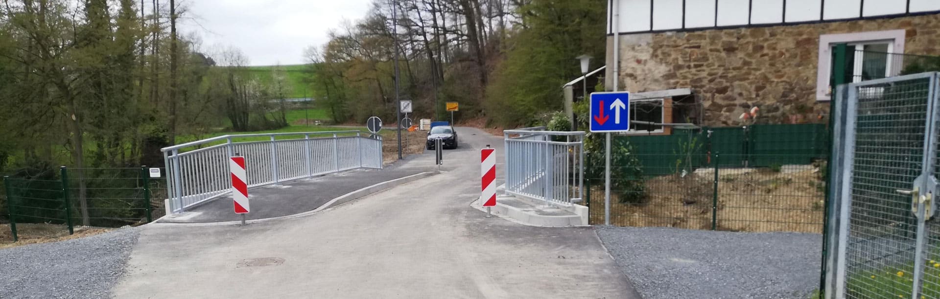 Das Warten hat ein Ende gefunden: Die Dürscheider Brücke ist seit Dienstag, 18. April wieder befahrbar. Mit der Montage des Brückengeländers und der von der Straßenverkehrsbehörde des Rheinisch-Bergischen Kreises genehmigten Verkehrsbeschilderung ist die Baumaßnahme nun abgeschlossen. Auch die Anwohner in Dürscheid atmen auf, ist doch die Zeit der Umwege nun vorbei. Die Kosten für die gesamte Maßnahme betrugen rund 600.000 Euro und wurden aus Mitteln der Wiederaufbauhilfe des Landes Nordrhein-Westfalen anlässlich der Starkregen- und Hochwasserkatastrophe erstattet.